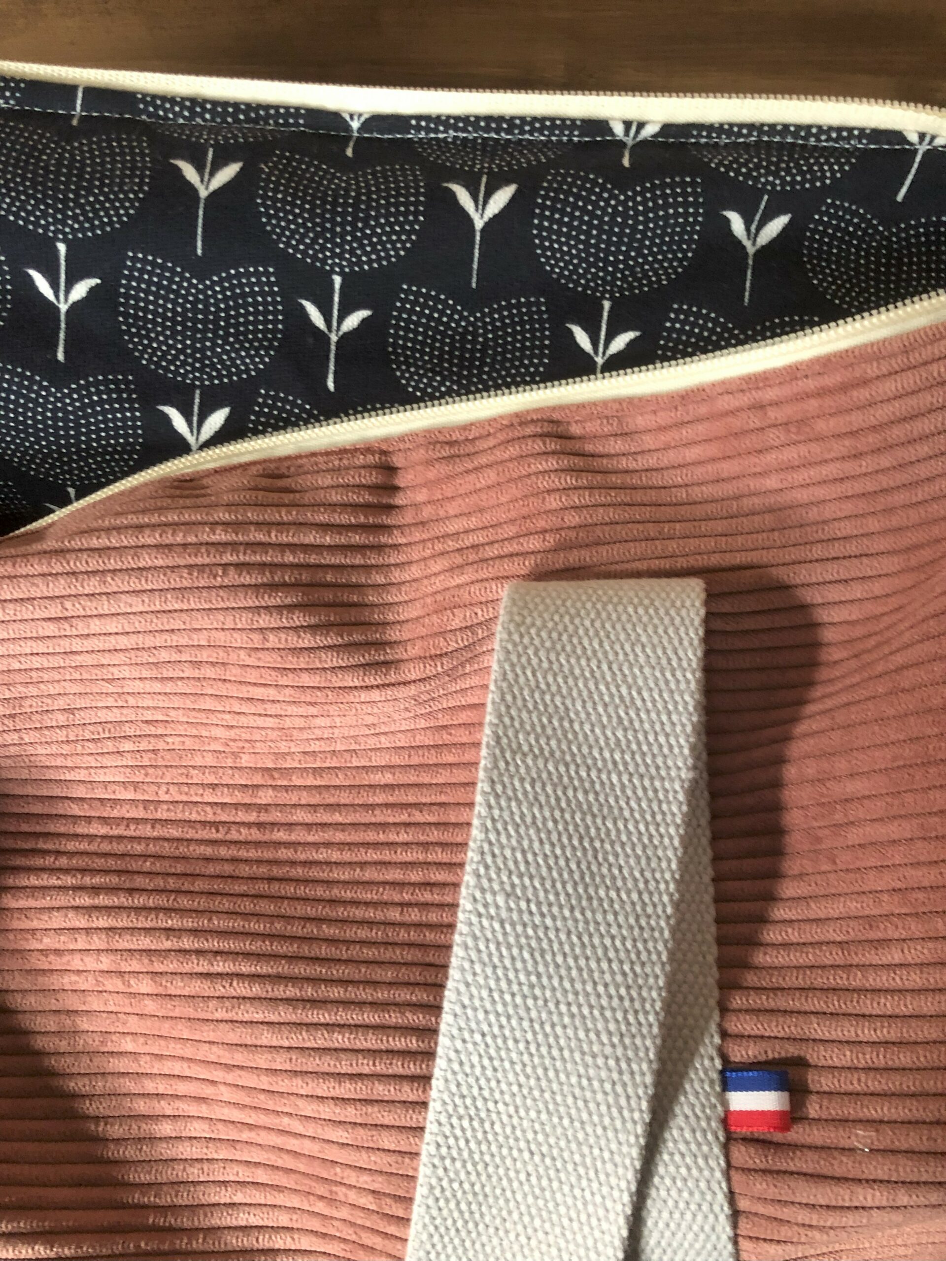 Sac version sport en velours côtelé rose